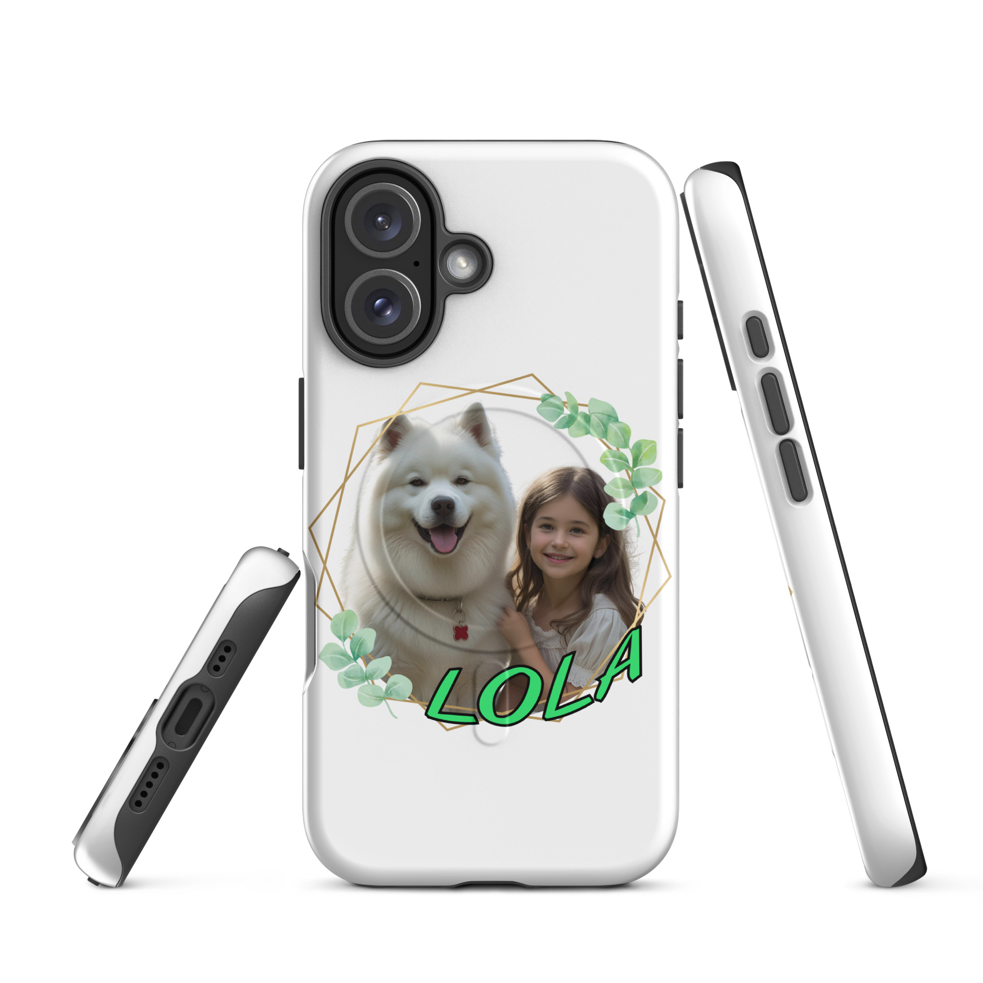 Chráňte svoj iPhone® týmto odolným, dvojvrstvovým puzdrom s MagSafe® magnetmi a personalizovaným dizajnom podľa vášho miláčika. Nárazuvzdorný vonkajší plášť a tlmiaca vnútorná vložka udržia váš telefón v bezpečí, zatiaľ čo vstavané MagSafe® magnety zabezpečia pevné prichytenie a rýchle bezdrôtové nabíjanie.
