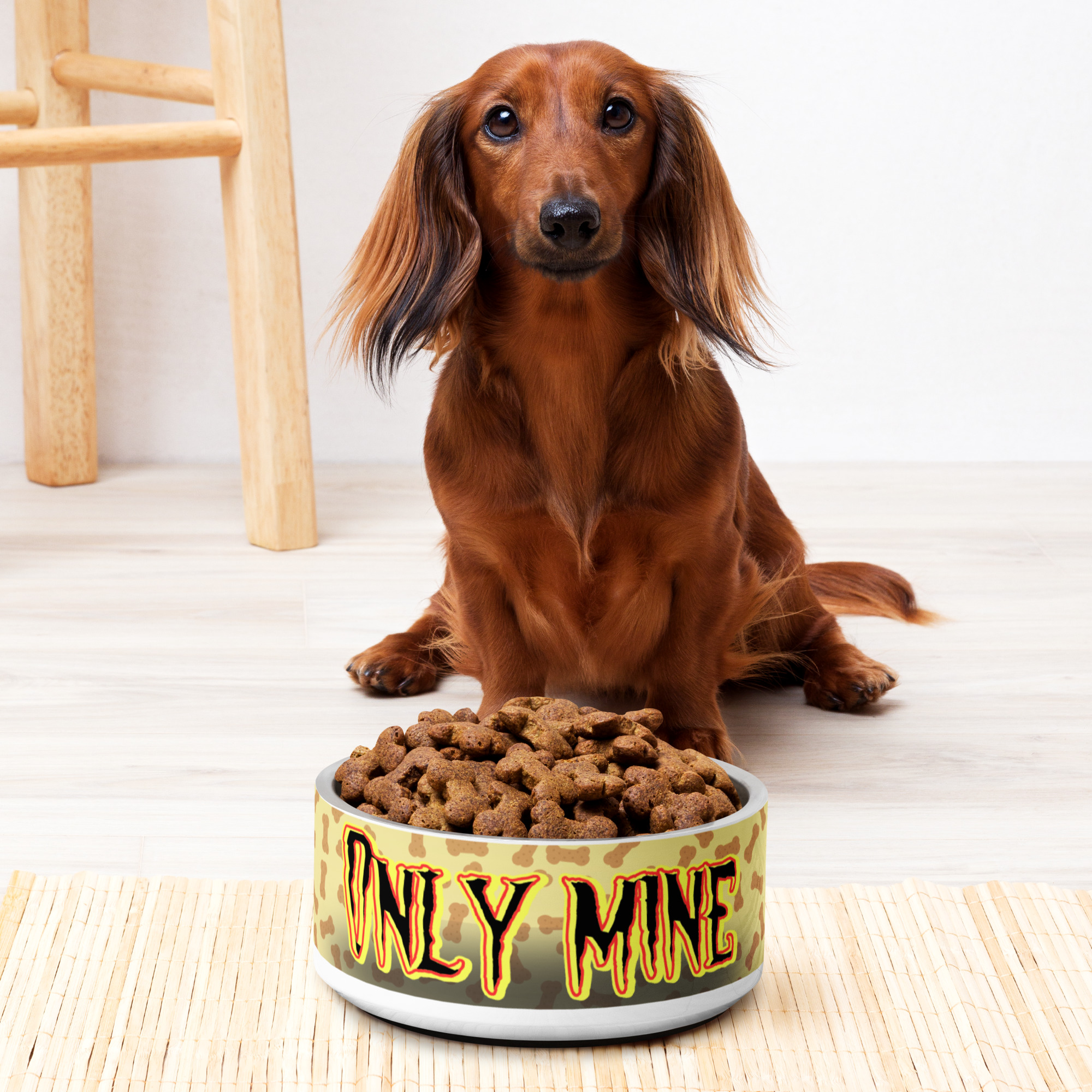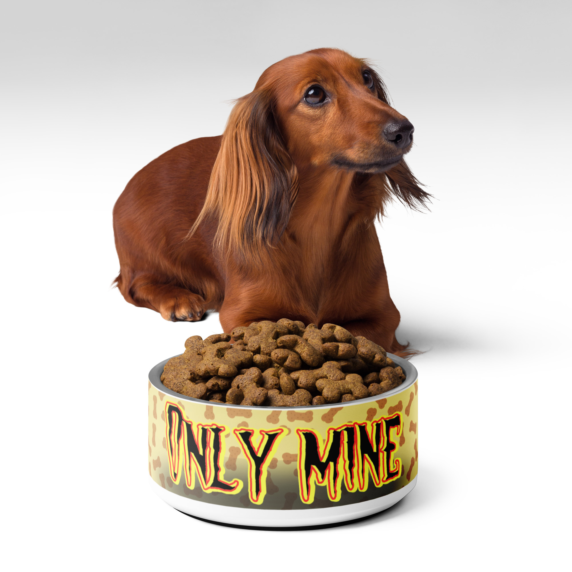 Nerezová miska pre psa „Only Mine“ – žltá – prekvap svojho domáceho miláčika!