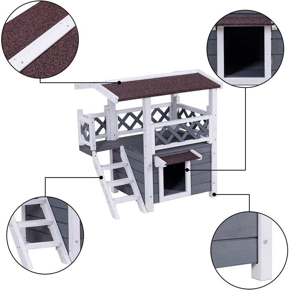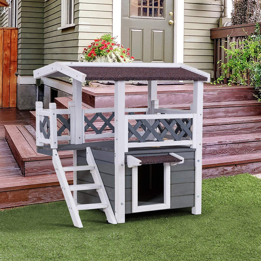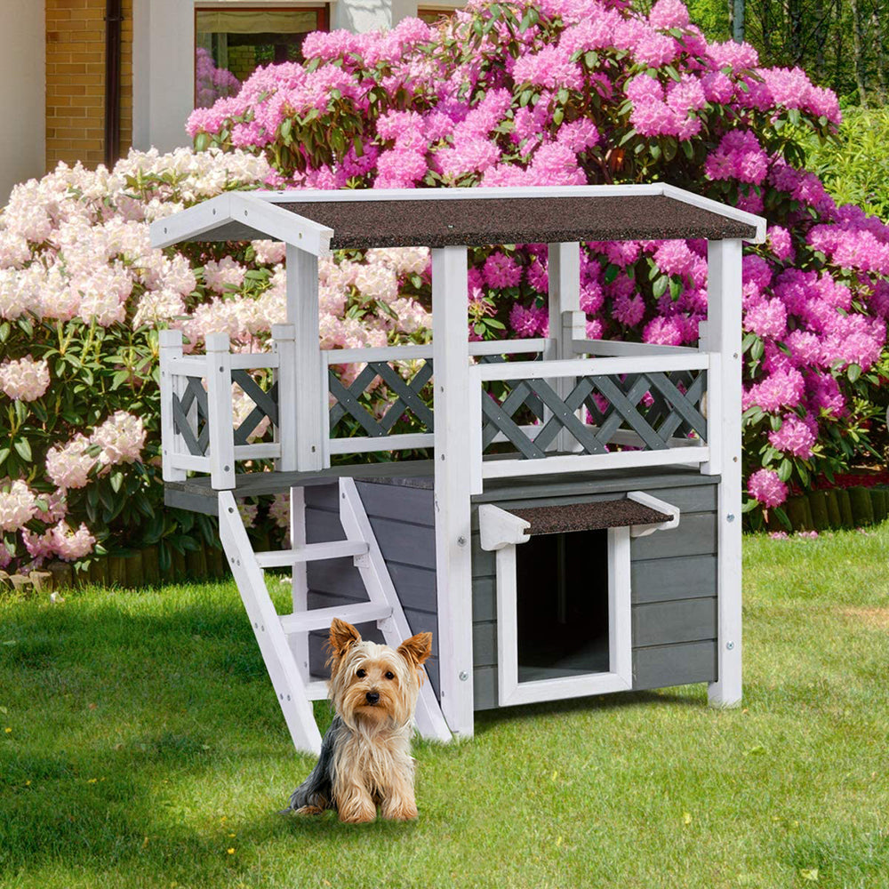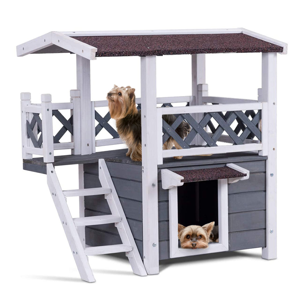 Thank you for reading this post, don't forget to subscribe!Poschodový domček pre psov/mačky, chráni pred poveternostnými podmienkami, poschodové prevedenie, vyrobený z neošetreného maľovaného dreva, ideálny pre zvieratá do 5 kg.