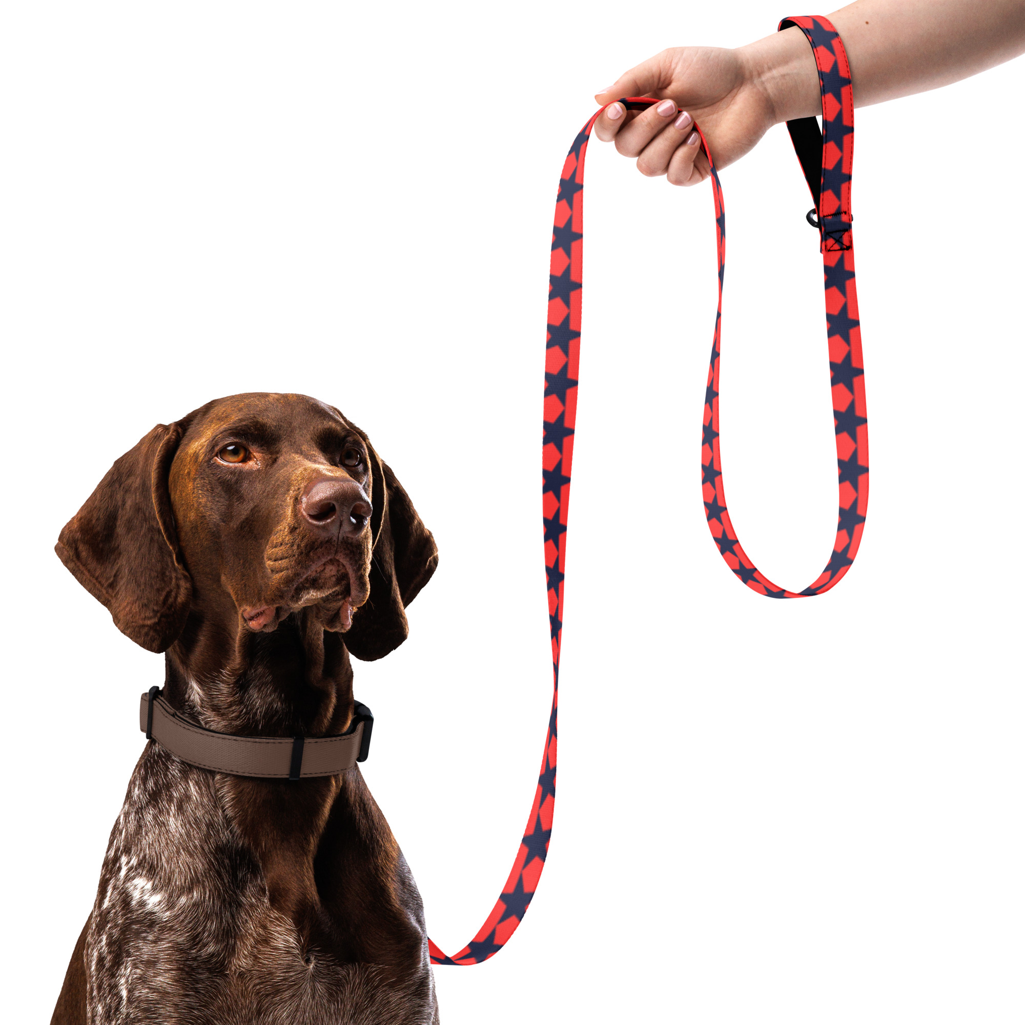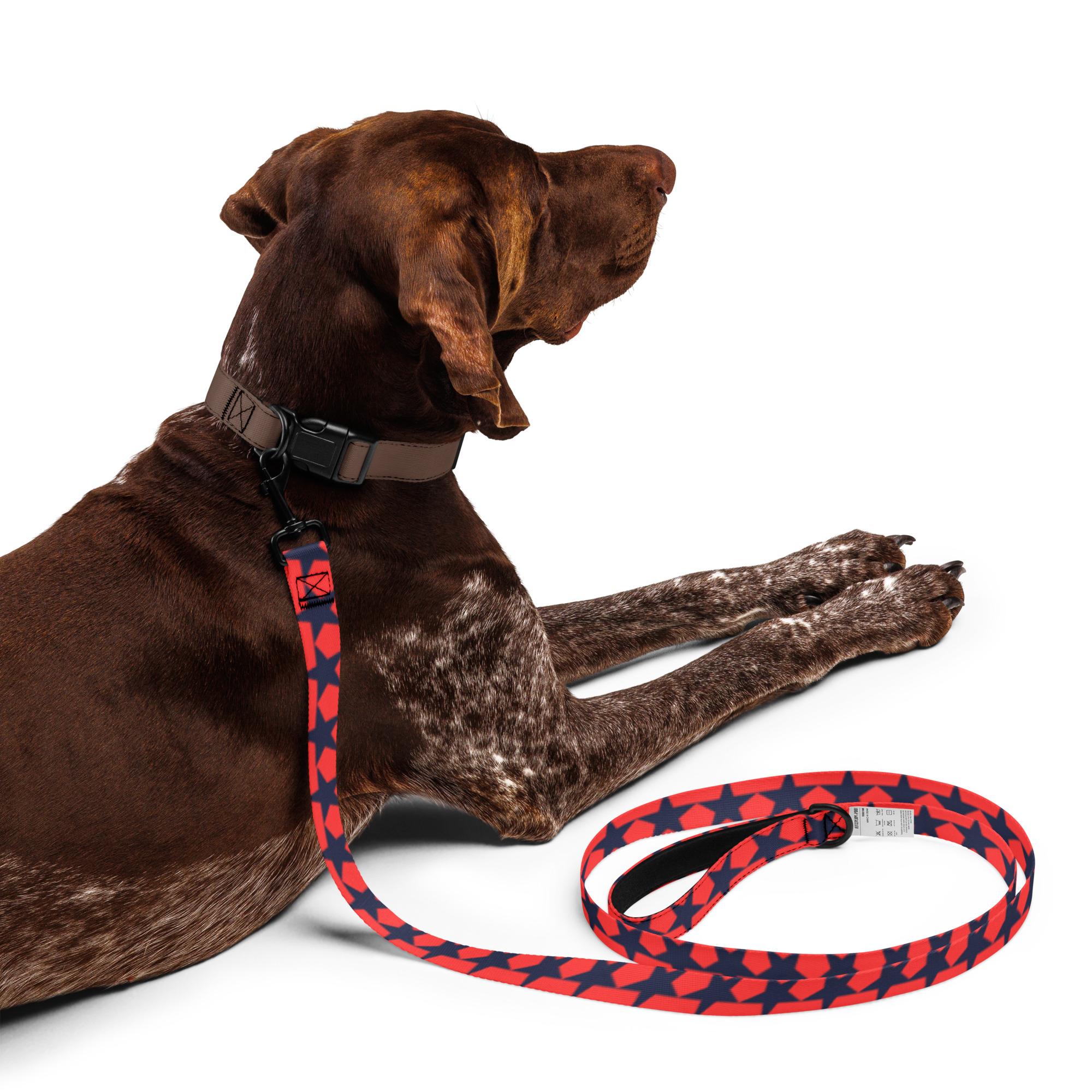 Doprajte svojmu miláčikovi štýl a pohodlie s týmto vodítkom – Štýlové vodítko pre psov – čierne hviezdy na červenom