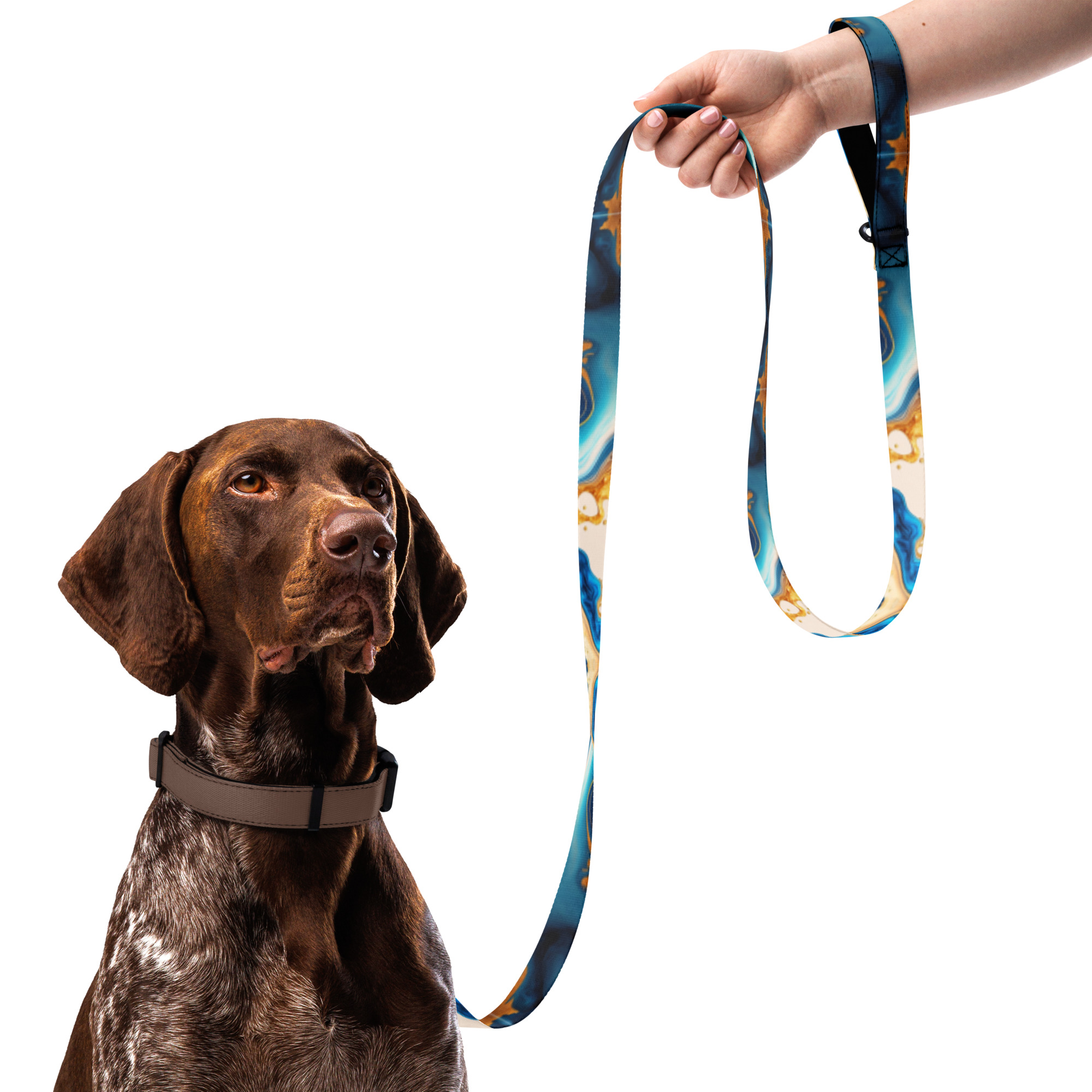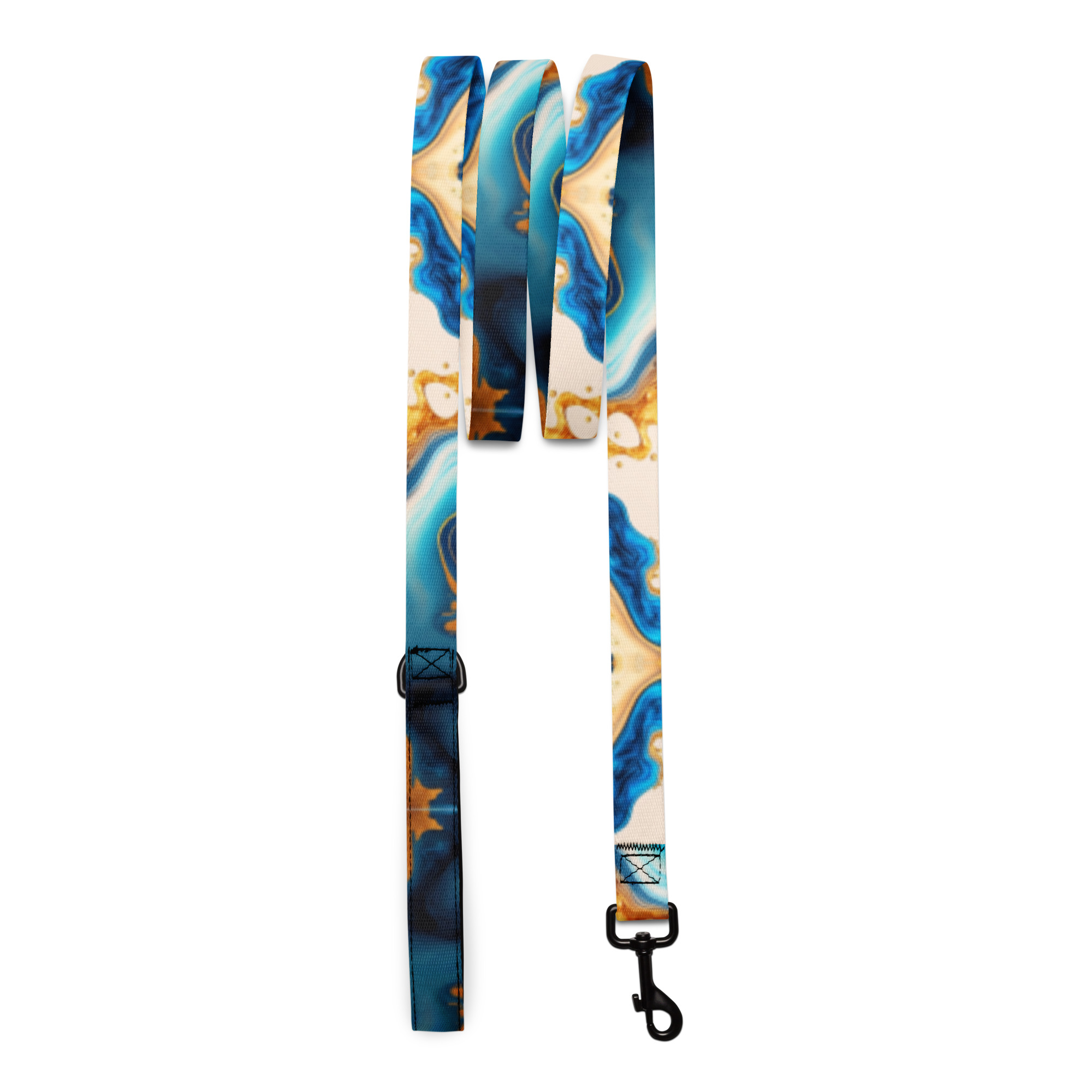Doprajte svojmu miláčikovi štýl a pohodlie s týmto vodítkom – Štýlové vodítko pre psov – modro-zlato-biely mramorový dizajn