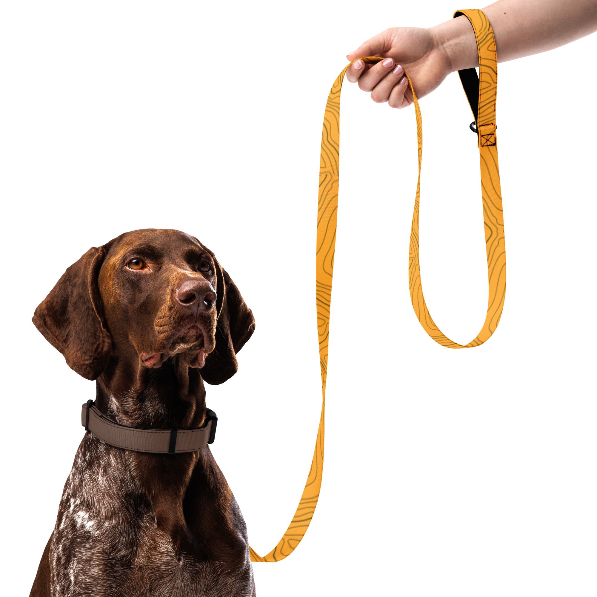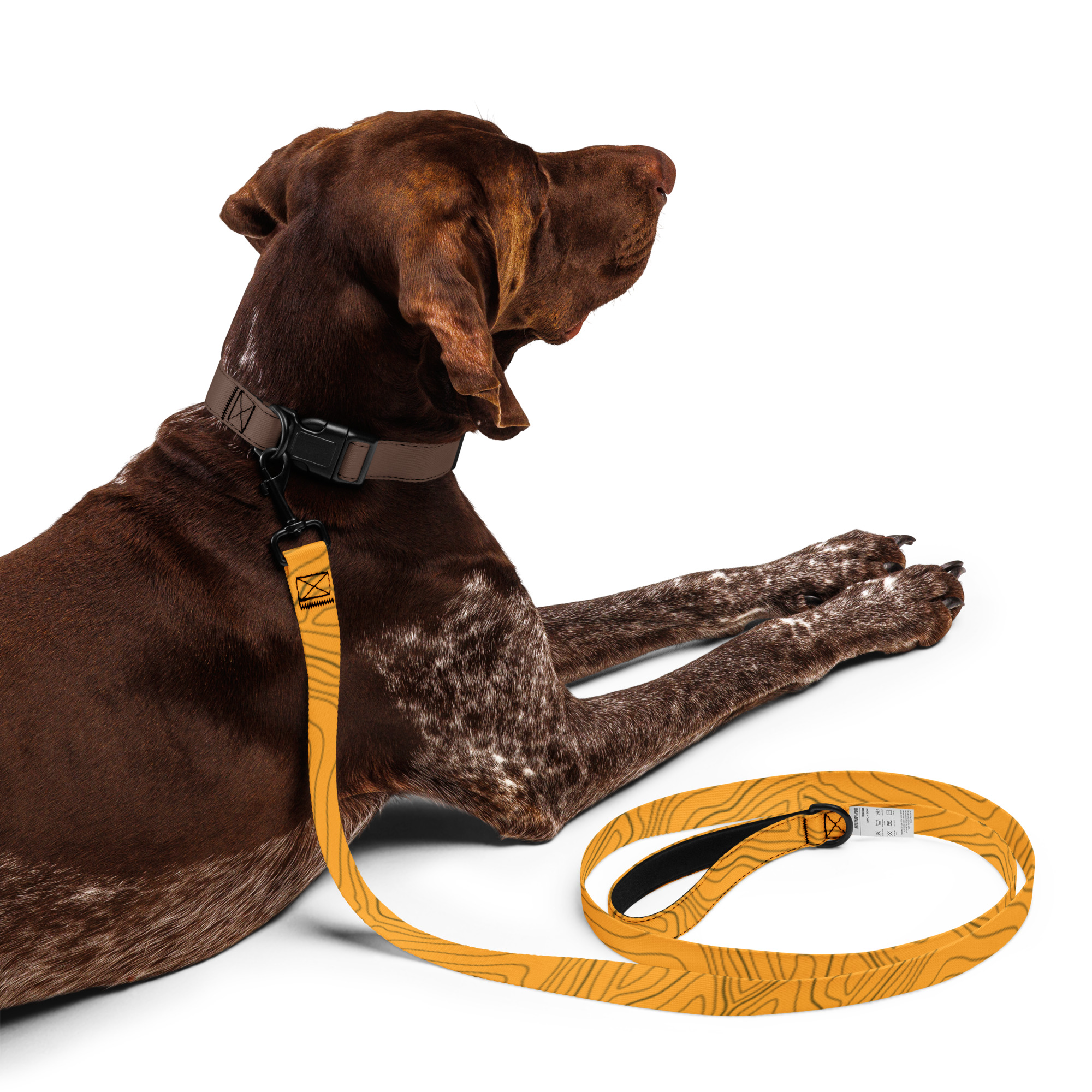Doprajte svojmu miláčikovi štýl a pohodlie s týmto vodítkom – Štýlové vodítko pre psov – oranžový dizajn s čiernymi líniami