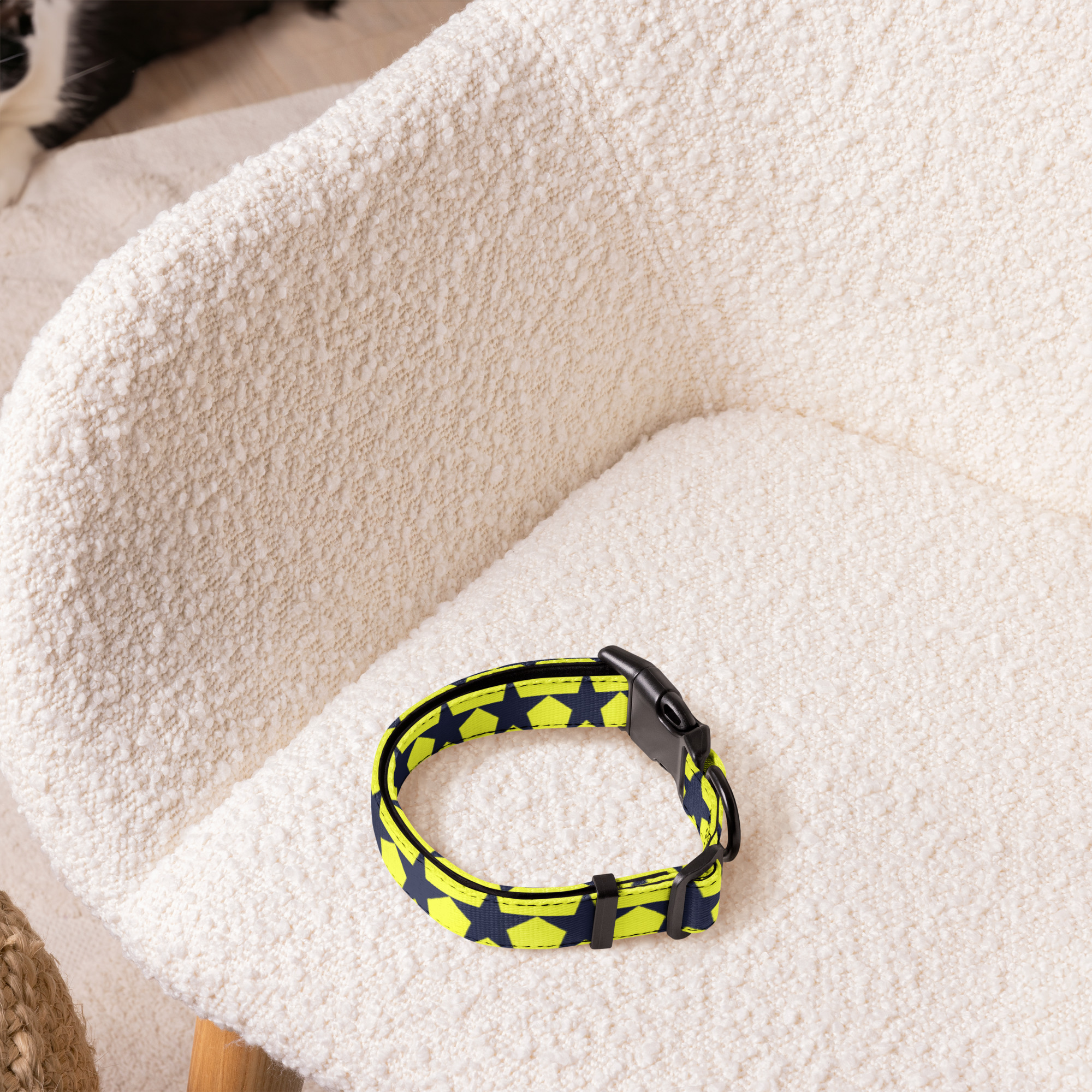 Doprajte svojmu domácemu miláčikovi štýlový obojok pre psa – čierne hviezdy na žltom, je vyrobený tak, aby vydržal. Je dostupný v 3 veľkostiach a má nastaviteľnú pracku pre bezpečné nosenie. Ideálny pre majiteľov domácich zvierat, ktorí chcú, aby ich štvornohí priatelia vyzerali a cítili sa skvele aj na prechádzkach.